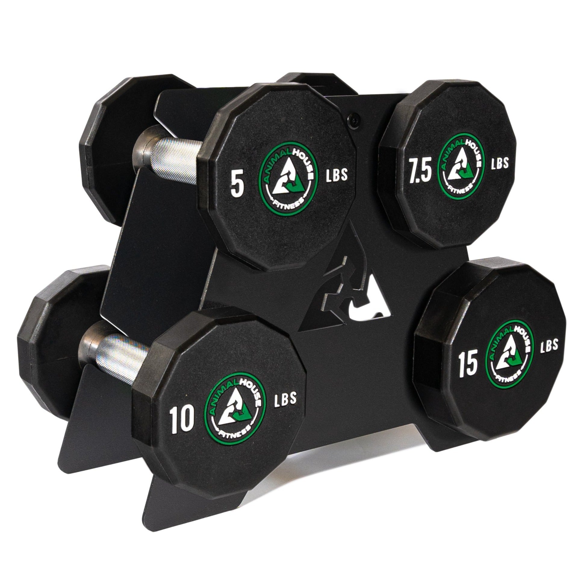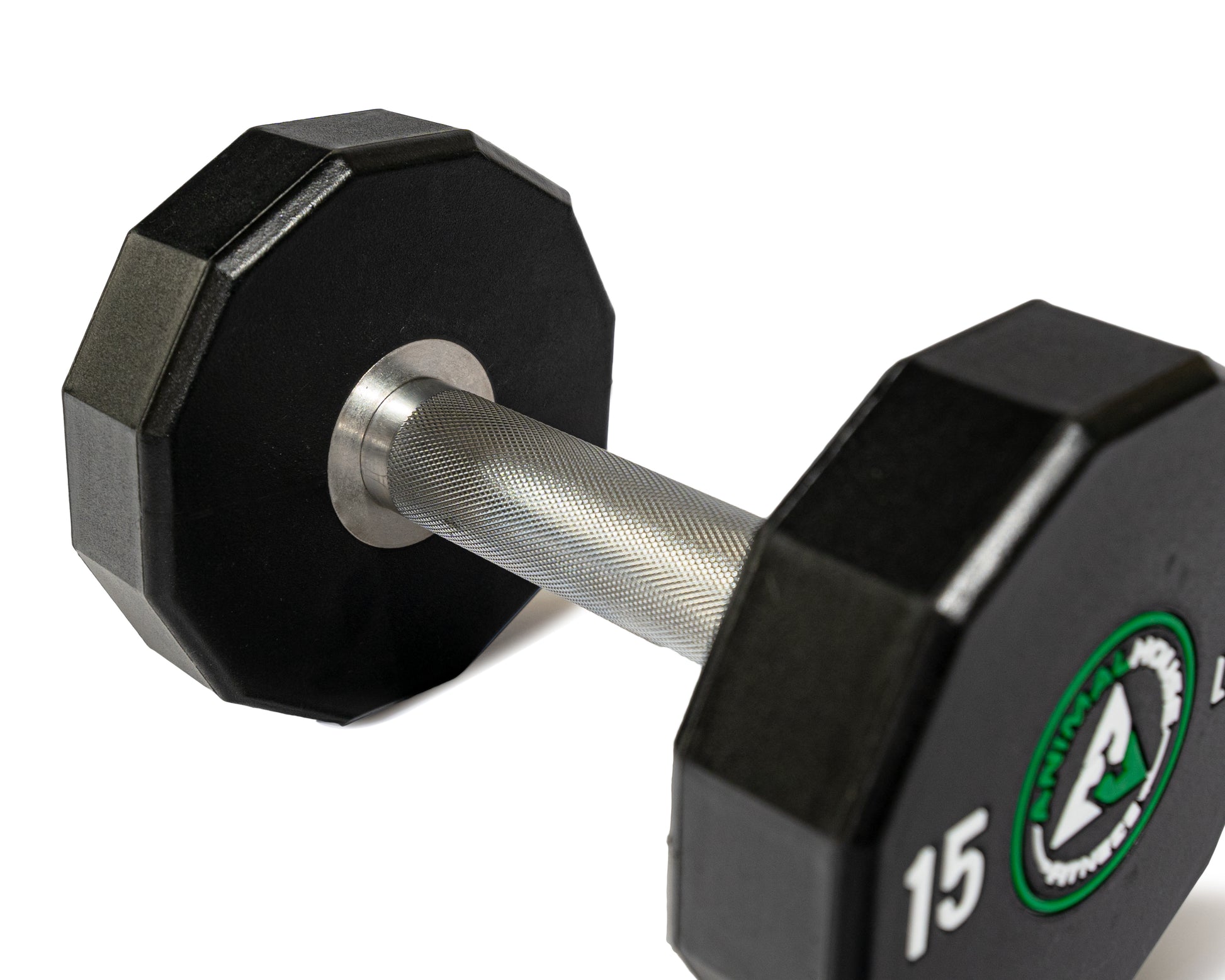 Dumbbells are made from a solid steel handle with cast polyurethane end caps to make up the best performing dumbbells in the game!