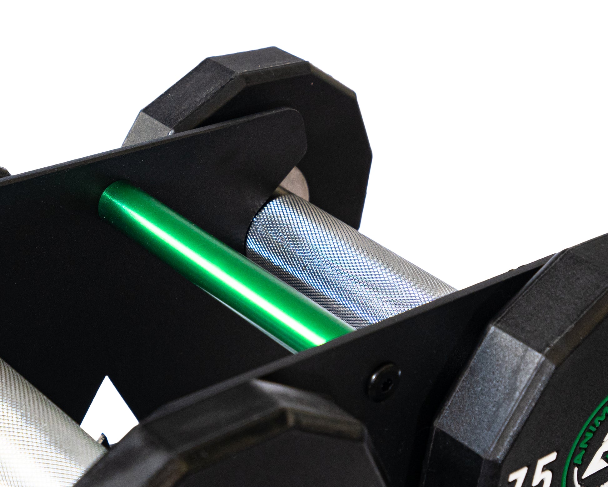 Our custom rack offers the perfect balance of sturdiness and portability. Its compact design is a space-saver, ideal for any home gym setup. Oh, and did we mention the badass shiny green parts? #premiumeverything